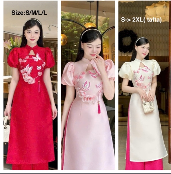 Áo Dài Cách Tân Vải Tafta Đính Kết